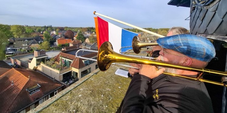 Om 08.00 uur klonk vanaf de Dorpskerk de Reveille. Nadat de vlag gehesen werd en de kerkklokken klonken, werd het militair signaal gespeeld. Wist jij dat de Reveille bij zonsopgang wordt gebruikt om militairen te wekken? Het komt van het Franse 'réveillez' (word wakker).