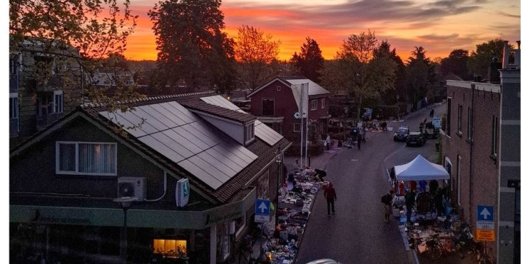 Vanmorgenvroeg werden de eerste kleedjes bij de Driestweg in Nunspeet klaargemaakt voor de Vrijmarkt. De lucht kleurde mee in het oranje!
