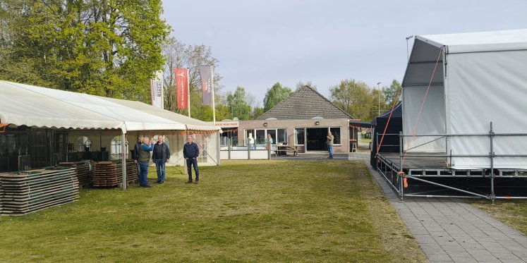 Bij VV Hulshorst worden de voorbereidingen voor het programma getroffen. Vanmiddag verandert het, nu nog rustige, sportpark in een en al feest!